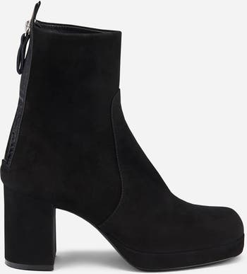 Ankle boot in velour with platform and block heel for perfect fit and stability. Rear zipper ensures extremely comfortable wear.