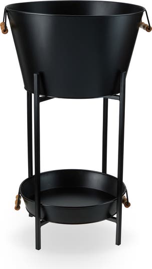 Keep drinks perfectly chilled for Easter brunch or outdoor spring entertaining with this elevated beverage tub and stand. The sleek black finish adds a modern touch while the lower tray provides extra space for glassware or bar tools.