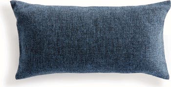 The indoor pillow that lives beautifully outdoors. Enjoy the upscale luxury and durability of Jacquard. With a woven dark blue pattern, it plays well with any palette. This pillow is weather resistant and responsibly made. Filled with 100% recycled fibers.