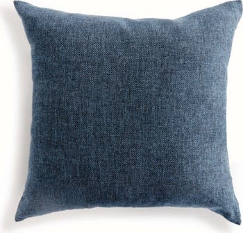 The indoor pillow that lives beautifully outdoors. Enjoy the upscale luxury and durability of Jacquard. With a woven dark blue pattern, it plays well with any palette. This pillow is weather resistant and responsibly made. Filled with 100% recycled fibers.