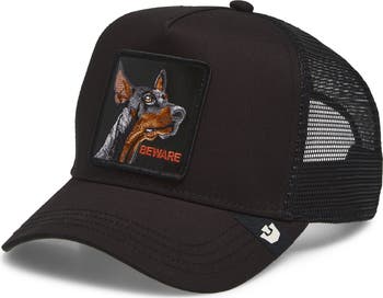 Be all bark and some bite in this mesh-panel trucker hat crowned with a vicious doberman patch. Shady in the front and breezy in the back, it's the best choice to wear whenever you're out on the prowl.