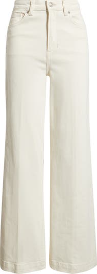 Hit refresh on white jeans season with a super stretchy pair presented with widened legs that elongate the silhouette.