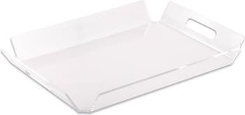 Elevate any soirée with this contemporary acrylic serving tray designed with angled sides, convenient handles and plenty of room for drinks.
