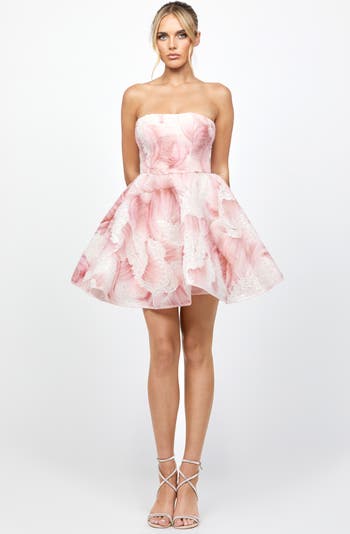 Playful yet polished, this mini dress is crafted from intricate 3D embroidered beaded net lace and mesh for a beautifully textured finish. Featuring a clean, straight-across neckline, the structured bodice is designed with built-in cups and boning for a supportive, sculpted silhouette. The A-line mini skirt adds a flirty touch with its crisp shape and flattering fit. Fully lined and finished with an invisible back zip closure, this standout piece is perfect for cocktail parties, bridal events, or special celebrations.