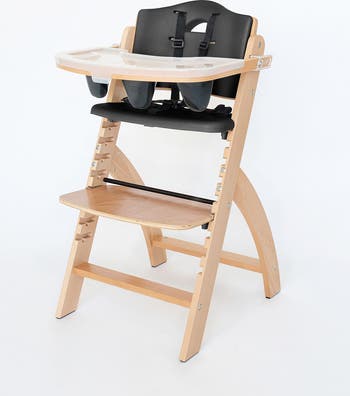 The Beyond Junior® Y High Chair is more than just a seat—it’s a lasting part of your family’s daily routine, from baby’s first bites to years of homework and shared meals.\nWith our patented EZ-Seat system, you can adjust the seat and footrest in seconds. No tools needed, so it always fits just right as your child grows. Designed to support healthy posture, the ergonomic 90-90-90 sitting position keeps growing bodies comfortable and aligned at every age.\nCleanup is just as easy. The tray cover comes off with one hand and goes straight into the dishwasher. Water-resistant cushions wipe clean fast (because spills happen), and the sleek wooden frame is built to handle years of wear with ease.\nMade from responsibly sourced European beechwood and crafted to hold up to 250 lbs, this high chair is made to last through every stage and every mess along the way.