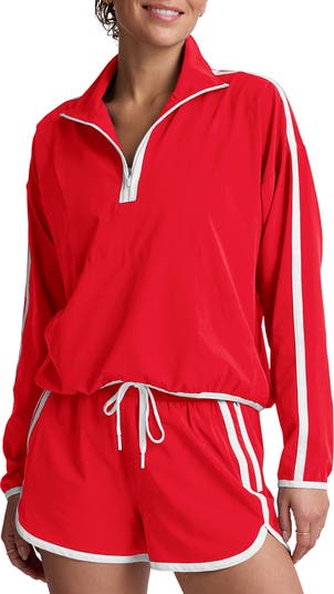 Perfect for cool downs and errand running alike, this half-zip pullover boasts sporty stripes and contrast binding.