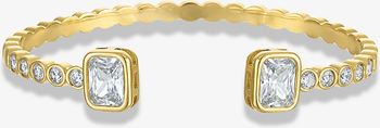 This adjustable waterproof bangle features bezel-set CZ stones that catch the light beautifully. A polished statement piece made for evenings out and special occasions.