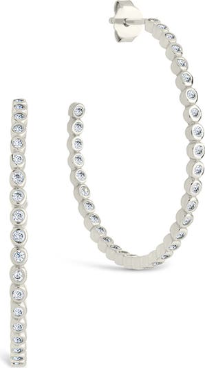 Bring elegant sparkle to your look with slender hoop earrings punctuated with bezel-cut cubic zirconia.