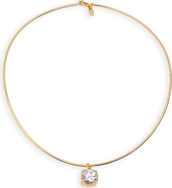 A milgrain settings with beaming pavé accents houses a faceted cubic zirconia in this polished wire necklace that brings structure to your stack.