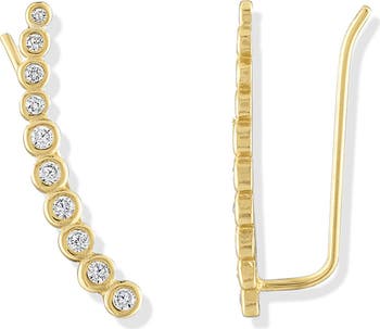 These bezel ear climbers prove that there is beauty in simplicity. They’re crafted from sterling silver that’s carefully inlaid with shimmering round-cut crystals.