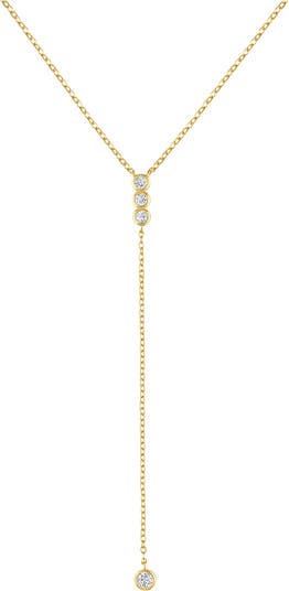 Drape in elegance with this lariat necklace, featuring a fine chain set aglow by sparkling cubic zirconias. Layer it with the brands single bezel cz pendant for sophisticated depth, and let it cascade over deep necklines to gracefully highlight your décolletage.