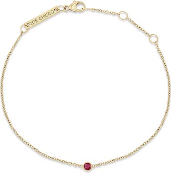 Zoë Chicco Bezel Gemstone Pendant Bracelet, Main, color, Yellow Gold/ Ruby