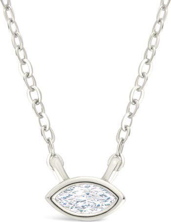 A bezel-set marquise-cut cubic zirconia pendant sparkles from this dainty necklace crafted from sterling silver or warm 14-karat gold plate.