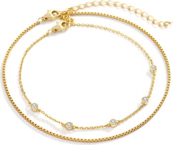 Bezel Set Diamond Bracelet and Box Chain Bracelet Stacking Set