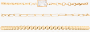 Bezel Stone, Paperclip, and Bead 14k Gold filled Bracelet Three Stack