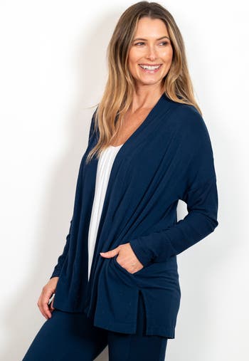 Get ready to meet your new BFF - the coziest, cutest and comfiest layer that will be your go-to piece for endless mix and match possibilities. Made of JJ’s heavenly soft modal fabric, this cardigan design is well structured and created with a focus on the things you need like well-placed pockets and the perfect weight to wear year-round. Fitted sleeves of ribbed modal give it a sleek and elevated vibe. Pack it for your next trip. Makes planes, trains and car trips super comfy. Check out your new fashion sidekick.
