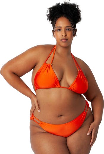 Make a statement with the Bianca Top! This bikini has double front shoulder straps and distinctive hardware that elevate the classic triangle silhouette. Wear it with the matching Bianca Bottom for a complete look.