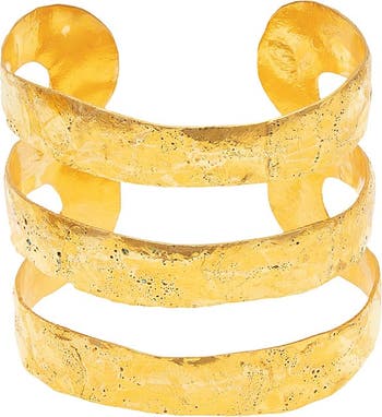 Gold plated brass cuff "Bianca" -Modern and artistic, this gold cuff features a triple-band design with a textured, hand-hammered finish. Lightweight yet bold, it's a statement piece that adds effortless sophistication to any look.
