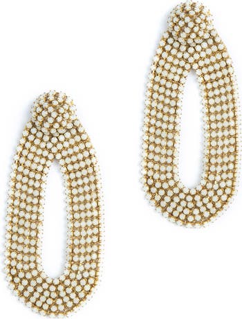 Glittering crystals lend intense shine to these elongated oval drop earrings that are perfect for sparkle-worthy occasions.