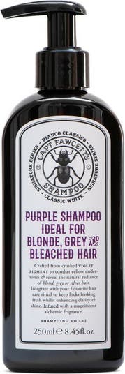 Ideal for Blonde, Grey and Bleached Hair.Captain Fawcett's toning Shampoo is crafted from crushed Violet pigment to combat yellow undertones and reveal the natural radiance of white or silver hair. Integrate with your favourite hair care ritual to keep locks looking fresh whilst enhancing clarity and shine. Infused with a simply magnificent alchemic fragrance for the platinum connoisseur.Scent: Evoking the seasons of a life well lived, woody Rosemary & Star Anise combine with invigorating Cyclamen, mineral Ambergris, calming Cedarwood & sun toasted Tonka.Evviva!