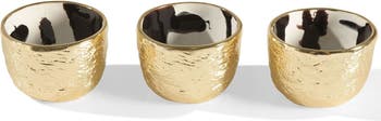 - Details Dimensions : 2.5" H x 3.5" Dia Finish : Gold, Black and White Material : Aluminum, Enamel Use and Care Given its handmade and hand-finished nature, variations in the piece are to be expected and celebrated. No two pieces are exactly alike. Food safe Hand wash with mild soap, water, and towel dry. Do not use abrasives or chemicals to clean the metal as it may scratch and discolor. Not dishwasher safe. Will not tarnish