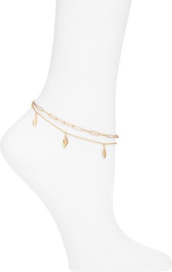 A chain with petal-like charms layers with airy paper-clip links in this delicately handcrafted anklet plated in 24-karat gold.