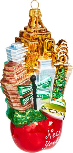 Bring the magic of the Big Apple to your holiday decor with this heirloom-quality ornament handcrafted from mouth-blown glass by European artisans, then dusted with glitter.