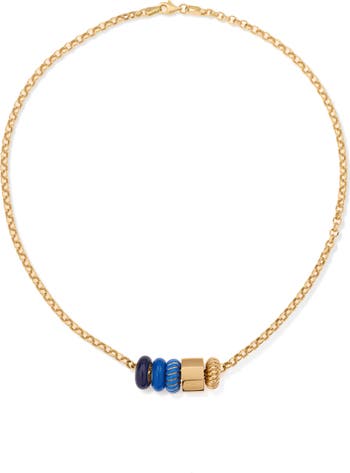 A mix of polished and enameled beads center this short, elegant, eye-catching necklace.