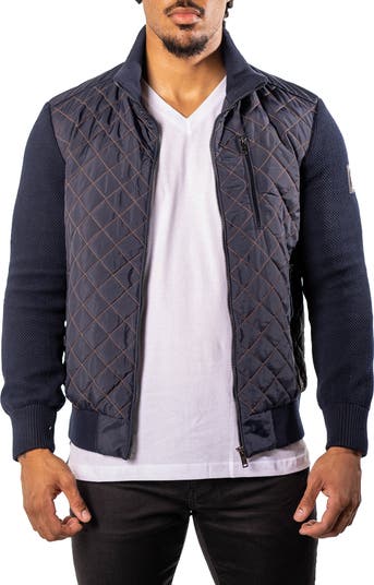 When you can't quite decide between a sweater and a jacket, this genius bomber gives you both with textured knit sleeves and a low-profile quilted body.