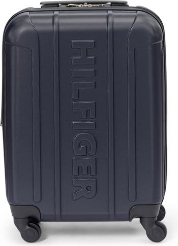 The Big Hilfiger Carry On will fit in most overhead storage bins. Roll to your and then your destination with smooth gliding spinner wheels. Choose from 3 colors.