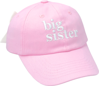 Every little girl will wear her new role with pride with this cute, classic cap designed for big sister celebration. It’s a pretty-in-pink accessory infused with fun, function, and femininity to make her feel even more special as her family grows. Perfect for gifting and pregnancy announcements.