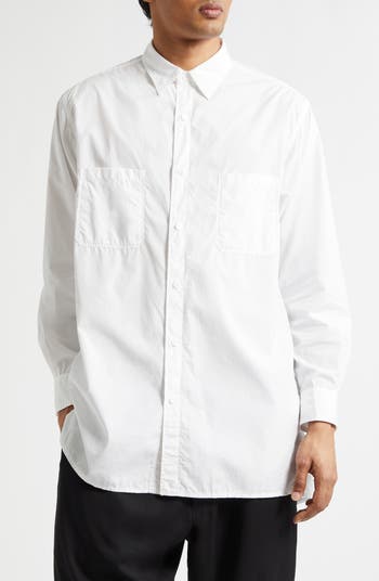 This oversized shirt is cut from lightweight cotton broadcloth woven with a high thread count for a smooth finish. Chest patch pockets provide utility, while chain stitching brings subtle texture.