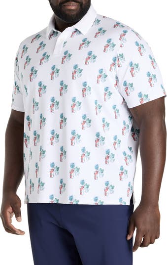 Proving that the 19th hole is often the best one, this Callaway golf polo shirt makes a statement on or off the course with its cocktail-inspired print. Designed for performance as well as elevated style, it wicks away moisture to keep you feeling cool and dry and includes Swing Tech™ technology for unrestricted movement. It's crafted in a recycled polyester and stretch blend for a smaller ecological footprint and features built-in UPF 50 sun protection to block harmful UV rays.