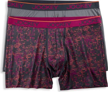 These Jockey® chafe-proof pouch cotton-stretch boxer briefs are the ultimate solution to sweat, chafing and those annoying, awkward adjustments caused from shifting. The 2 pack, moisture-wicking style is made with Staycool+® technology to help keep you cool and dry. The mesh-lined and vented pouch keeps everything comfortably separated and supported for improved airflow and flat-lock seams minimize friction and chafing. The perfect undergarments for an active lifestyle, you can bend, stretch, run or sit while everything stays in place with next-to-zero adjustments.