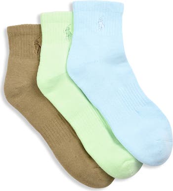Put your best foot forward with these stylish and comfortable quarter-top socks from Polo Ralph Lauren. Lightweight and breathable in a moisture-wicking fabric blend, they're the perfect choice to finish off your Polo looks. The 3-pack set features various colors, flat-toe-seams, half-cushioned soles with built-in arch support and the signature embroidered Pony logo.