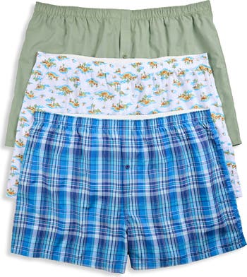 Sail away, and away, and away with these Harbor Bay boxers. Designed at DXL with proper proportions for Big and Tall guys, they're made from a breathable cotton and polyester blend. The three pack set features one solid pair, one striped pair, and one with a tropical-inspired pattern. Designed with a full-rise front and back to provide plenty of support, they also feature comfort leg openings that will not bind, chafe or ride up.