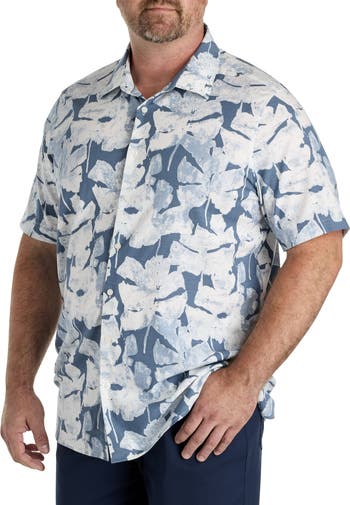 For bold, smart-casual style, choose this short-sleeve sport shirt by Perry Ellis. Designed with proper proportions and an ideal fit for Big and Tall guys, the abstract leaf pattern adds a unique touch that steps up your style game. Made for comfort as much as fashion, it features a more-sustainably made, durable plain weave fabric for a lightweight and breathable feel that's ideal for warm weather, whether you're on vacation or at a weekend event.