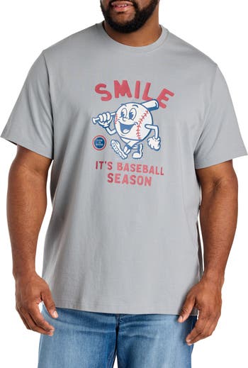 "Smile, it's baseball season". If you can't help grinning ear to ear at the thought of ball games, this Life is Good® graphic T-shirt is the one for you. Designed with precise proportions and the perfect Big and Tall fit, it's crafted in 100% cotton with a feels-like-you-had-it-forever ease. Comfortable and easy to wear, it allows for the freedom to move without restriction and is sure to be a home run in your graphic tee collection.