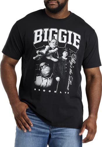 Let's face it, we all know Biggie Smalls, aka The Notorious B.I.G., aka Christopher Wallace, needs no introduction. With his laid-back lyrical delivery and fast-paced rhyming style, the East Coast legend quickly rose to fame as one of the greatest rappers of all time. With his likeness proudly depicted on this black and white graphic T-shirt, it's a "hypnotizing" look that's sure to be a conversation starter. It's crafted in 100% cotton with a relaxed, roomy fit and is a must-have style for all music fans.