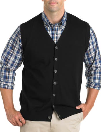 Lightweight warmth and long-lasting wear in a traditional layering piece with faux horn buttons, ribbed-knit trim. Cotton. Machine wash. Imported.