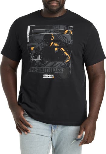 Game on, "COD" fans. Choose your mission. Crafted in 100% cotton with a relaxed, roomy fit, this Call of Duty: Black Ops graphic tee is comfortable and easy to wear. It features a screenprinted graphic on the front side and is the perfect choice to pair with jeans, shorts, joggers and more for a comfortable, laid-back look.