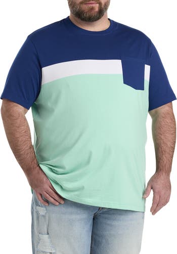 Nothing compares to the ease of a beloved tee. This style is destined to become a top-drawer favorite with its modern colorblock pattern and soft texture. It's an updated style with improved proportions for a better fit and it's made with moisture-wicking fabric so you feel – and look – cool and collected every time you wear it. You'll also love the durable reinforced shoulder seams and comfortable, tagless crewneck. It's just the right length and falls at the right spot on shorts or pants. Plus, it's designed right here at DXL with precise proportions and an ideal fit for Big and Tall guys. Exclusively ours60% cotton/40% polyesterMoisture-wicking technologyTagless, ribbed-knit crewneckReinforced shouldersChest pocketShort sleevesStraight hem Machine wash; imported