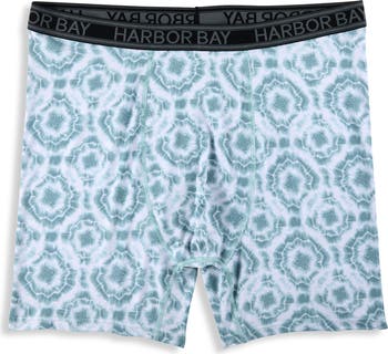 Four-way stretch and a flat center back seam add flexibility to these ultra-comfortable boxer briefs from Harbor Bay. Designed at DXL with precise proportions and the perfect Big and Tall fit, the smooth stretch knit features temperature-regulating HeiQ Cooling Technology to enhance your comfort. Plus, they wick away moisture to keep you cool and dry, feature antimicrobial properties and have a fun print pattern, too.