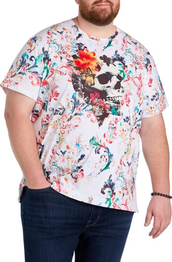 An artistic mix of paisley and florals swirls across this graphic T-shirt from Robert Graham, framing a bold skull motif that’s equal parts edge and sophistication. The deadly blossom print is sure to turn heads and spark conversation.