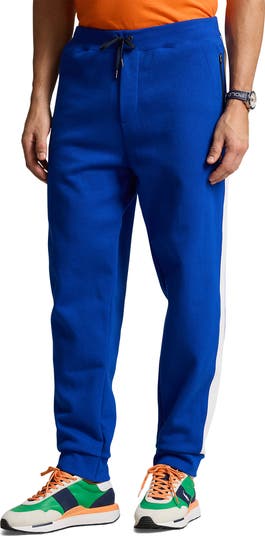 These colorblocked cotton-blend pants from Polo Ralph Lauren are cut with a sleek double-knit fabric that features mesh facing. They have striped piecing at the outer side of each leg and the signature embroidered Pony at the left hip._x000D_