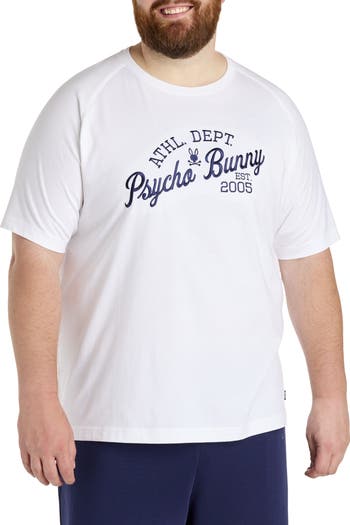 This Psycho Bunny graphic tee is steeped in an American sporting style, complete with raglan sleeves and a retro-inspired design. Crafted in soft and breathable Peruvian Pima cotton, it's designed with proper proportions and an an ideal fit for Big and Tall guys. The taped shoulder seams ensure it never loses its perfect shape. Pair it with your favorite shorts, jeans, joggers or our coordinating Psycho Bunny shorts for a complete, casual look.