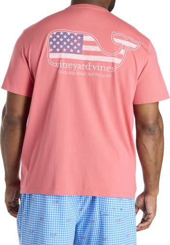 Refresh your collection of vineyard vines tees with this versatile T-shirt. Designed with proper proportions for Big and Tall guys, it's crafted in ultrasoft Peruvian cotton. It features a relaxed fit for everyday wear and is finished with an American flag and signature whale graphics screenprinted on the chest pocket and back. Paired with jeans or shorts, it's an easy-to-wear look that's casual and comfortable.