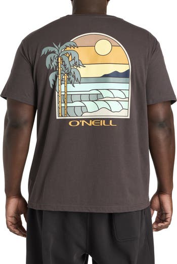 Show your brand loyalty with this O'Neill graphic tee. Destined to be a favorite for its soft cotton fabric and true-to-size fit, it's designed with precise proportions for Big and Tall guys. Allowing for the freedom to move without restriction, it's the perfect choice to pair with shorts, twills, jeans, or even swim trunks for casual style and comfort. The colorful, hand screenprinted design on the back side is reminiscent of stained glass, giving it an artful appeal.