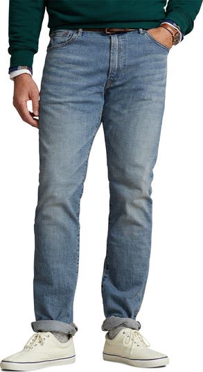 Polo Ralph Lauren’s most relaxed fit offers an easy silhouette without excess fabric and works for all body types. Crafted of American stretch denim, this pair is indigo-dyed, stonewashed, and hand-sanded for a worn-in look that only Ralph Lauren could recreate. The Hampton Relaxed Straight fit sits slightly below the waist with a relaxed rise, an easy fit through the seat and thigh, and a full, straight leg.