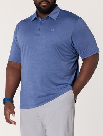 Experience exceptional performance and refined style on and off the course with this Callaway golf polo shirt. Crafted from a soft single knit polyester blend, it features a subtle heather jacquard print for a sophisticated look. Designed with advanced Opti-Dri™ technology, it expertly wicks away moisture, keeping you cool and dry even during intense rounds. The innovative Swing Tech™ and added stretch ensure a full, unrestricted range of motion with every swing. Plus, built-in sun protection shields you from harmful UV rays, making it an essential piece of your golf wardrobe for sunny days.